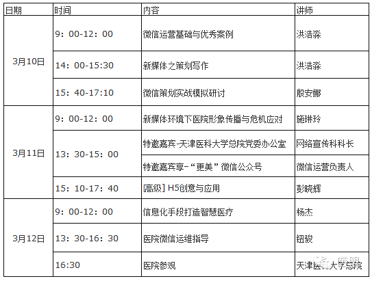 尽在3月10日至12日医院新媒体品牌策划与传播高级课,施琳玲老师等共3位医院微信大号运营牛人外加3位实力外援齐聚天津南开大学,帮你解决微信运营难题,拓展医院微信运营新思路,引领医院宣传新模式!