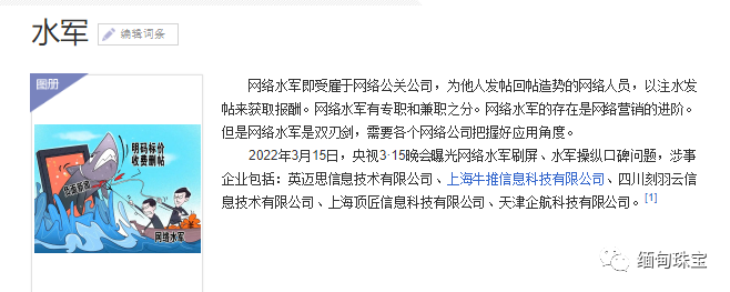 网络水军即受雇于网络公关公司,为他人发帖回帖造势的网络人员,以注水发帖来获取报酬。网络水军有专职和兼职之分。网络水军的存在是网络营销的进阶。但是网络水军是双刃剑,需要各个网络公司把握好应用角度。现在珠宝网络直播水军多,一个客户十个托.