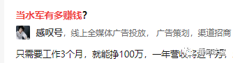 知乎上一个答友称:当水军只需工作三个月,便能挣到一百万。
