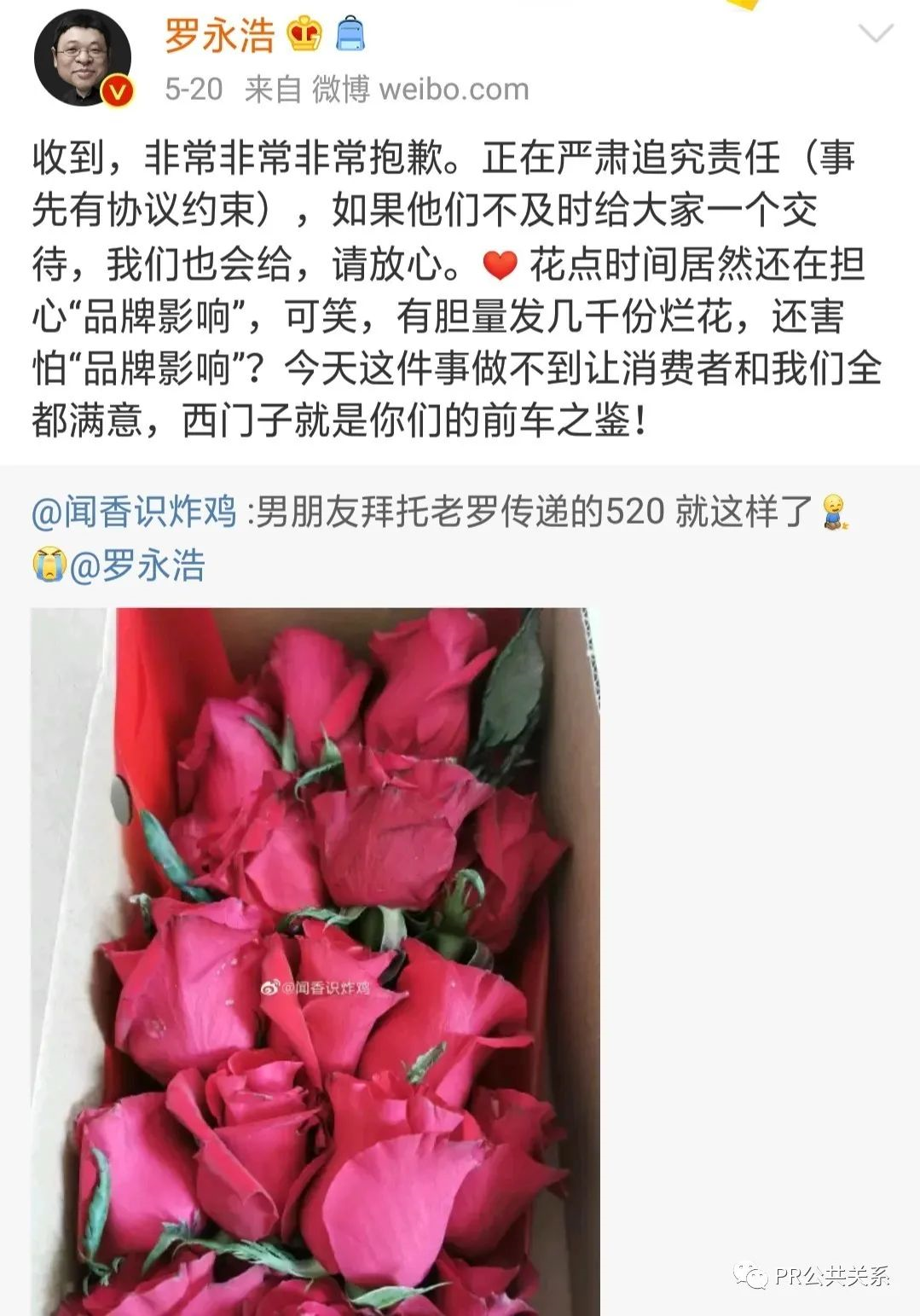 5月15日,罗永浩直播间推出花点时间玫瑰花,结果没想到花也翻车了。