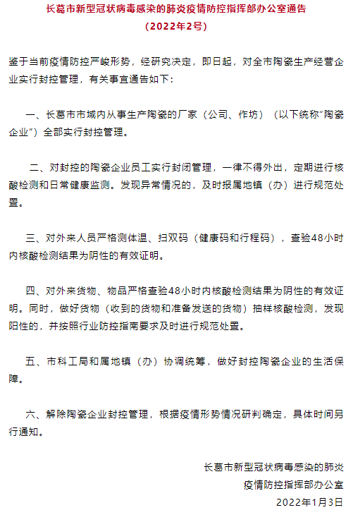 【河南长葛全域陶瓷生产企业实施封控管理】