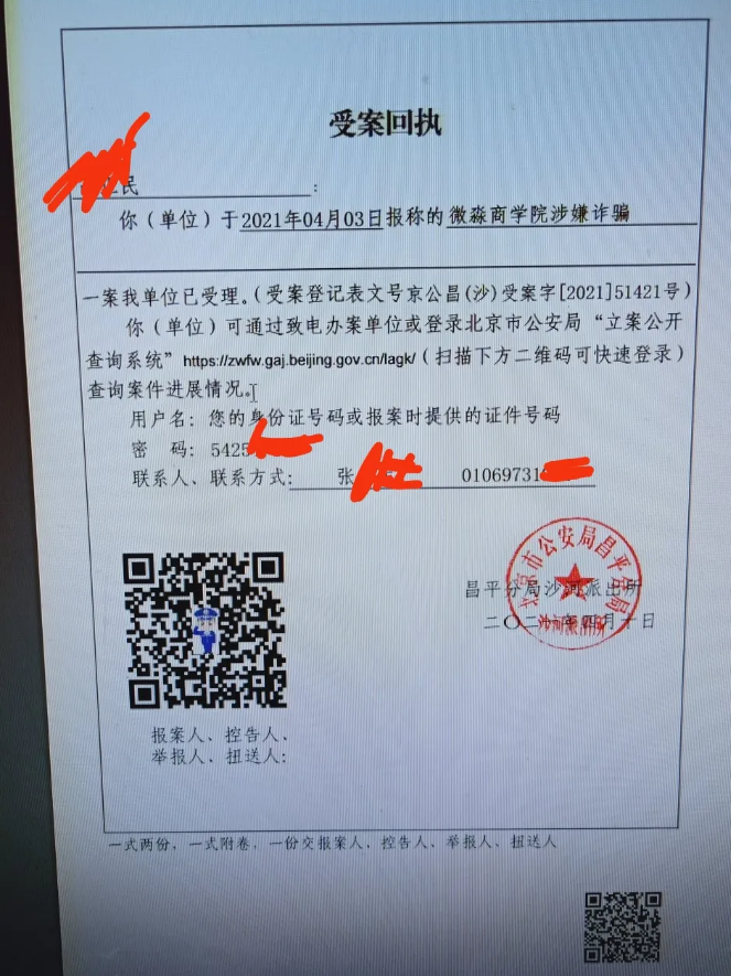 微淼已经被全国多地以涉嫌诈骗立案,请全国各地被微淼诈骗的学员尽快就近报案或是直接向北京昌平分局沙河派出所报案!
