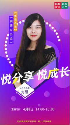 本期由公共关系部的刘阳讲师为大家带来一场《舆情与公关》的直播分享。