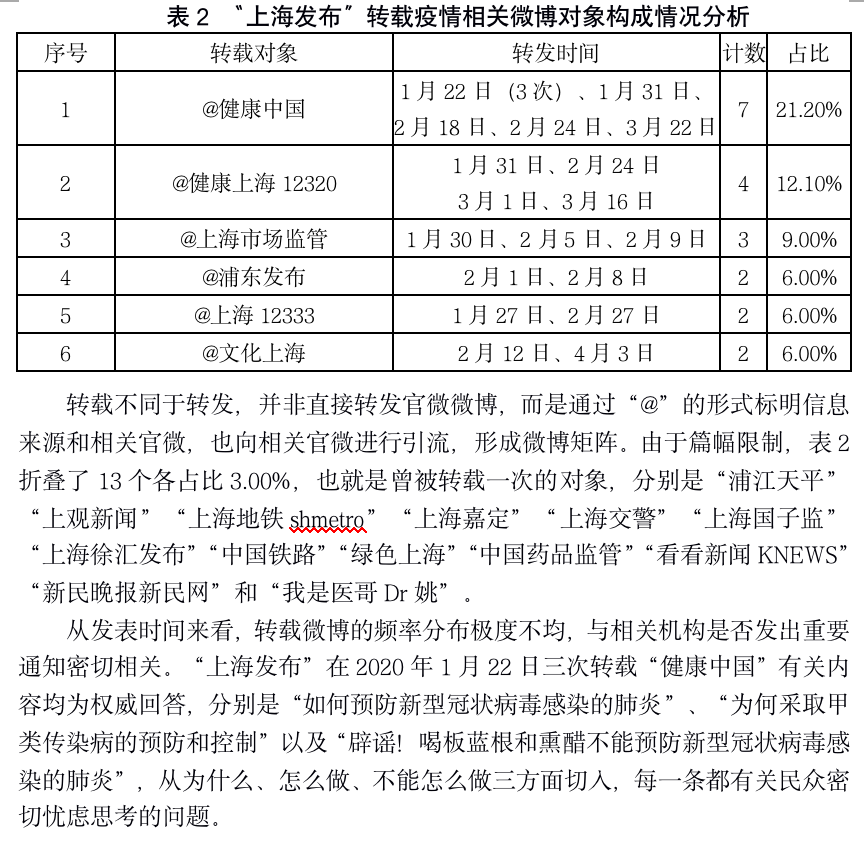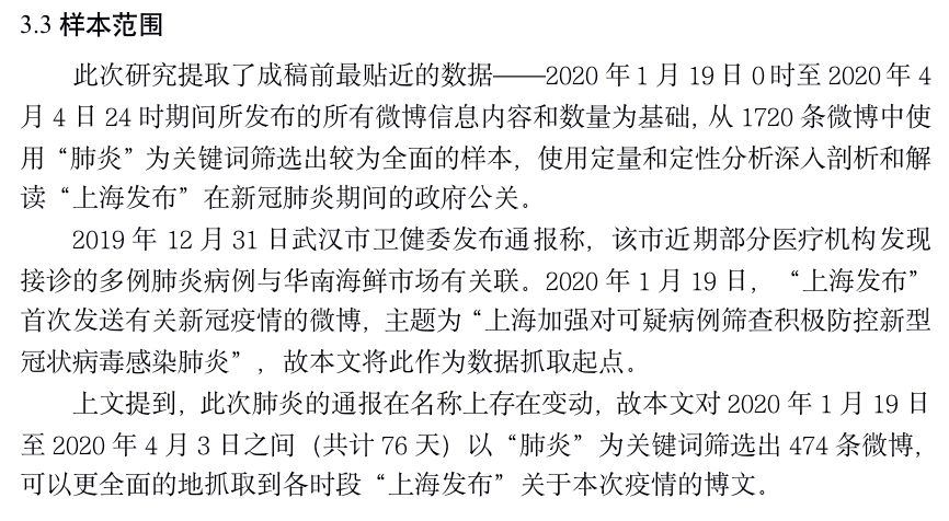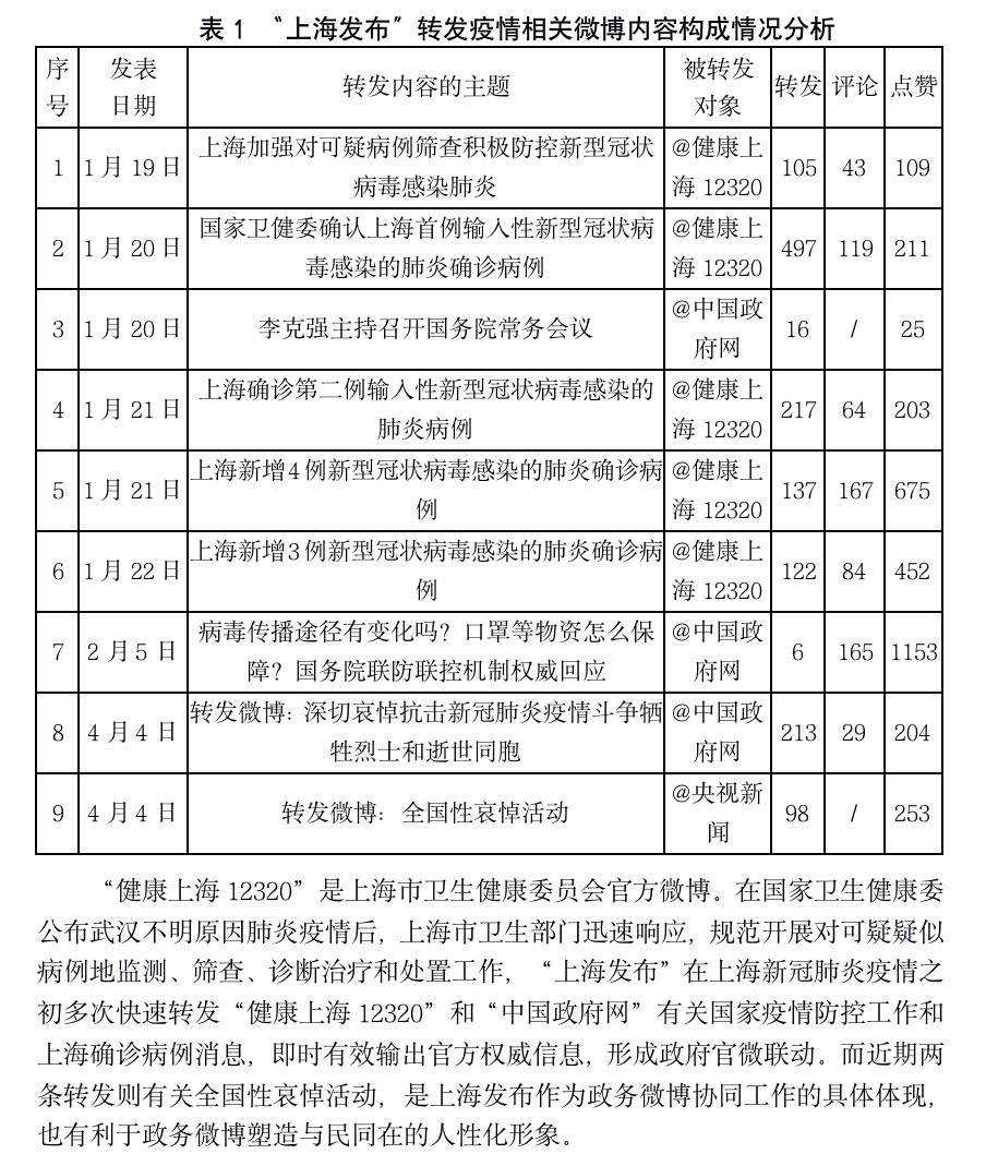 本文研究关注的中心有三处:一,上海发布与疫情相关的传播内容、特点和效果;二,上海发布在疫情期间发挥了哪些政府公共关系建设方面的作用;三,通过观察上海发布,研究如何使类似政务微博在突发公共事件中发挥更好作用。
