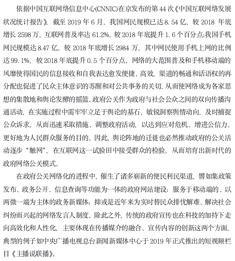 在全球化的大背景下,增进对国内公众的意识形态宣传,提高青年群体的国家认同感与归属感需要政府进一步转变宣传模式,以政府公关的视角不断推进双向沟通的探索。