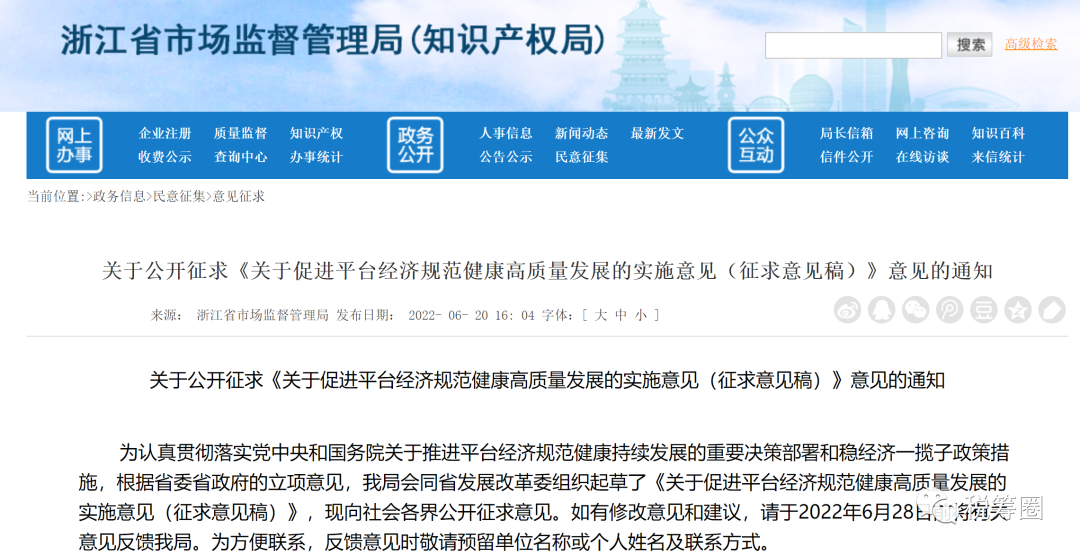 关于促进平台经济规范健康高质量发展的实施意见(征求意见稿)