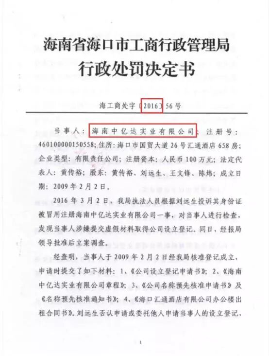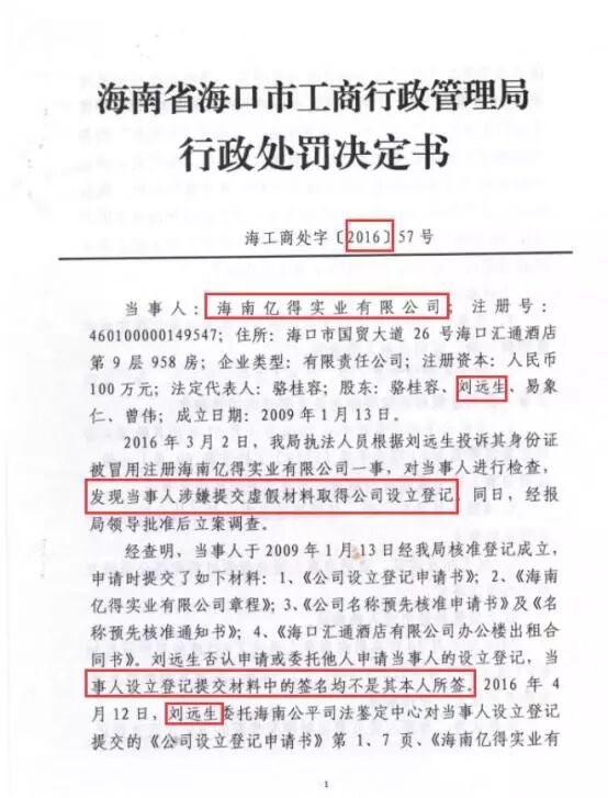据悉,刘远生是被股东,压根没去成立这些公司。