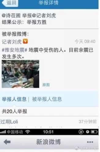 刘虎,从网上的资料看以前也是个记者,不过因为多次假新闻事件被多家媒体开除,现在是所谓的自由媒体人。在雅安地震的时候,他使用了大量什邡、映秀等汶川512地震图片冒充四川雅安地震现场图片来博取眼球,后来这事儿被网友在天涯论坛上举报。