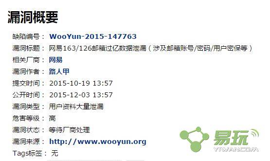 2015年10月19日下午消息,乌云今日宣布发现新漏洞,此漏洞将导致 网易 163/126邮箱过亿数据泄漏,涉及邮箱账号/密码/用户密保等。