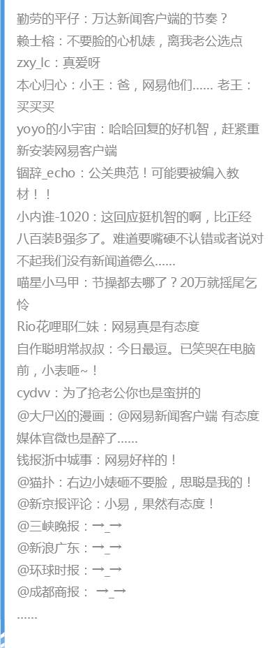 对于大部分观众来说,这篇公关稿已经达到了作用,诚恳的道歉、并且承诺严肃处理,加上以一种轻松活泼的行文方式逗得大家一乐。即使后面新周刊觉得没诚意,还借用了雷蒙德●卡佛的一句话:『不需要廉价的花招』来回击网易。但也难以阻挡网易新闻客户端依旧还是那个有态度的新闻客户端。
