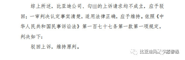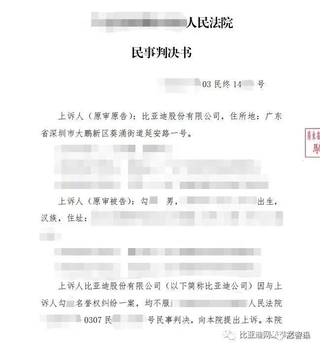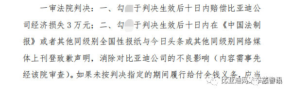 根据比亚迪网络举报中心公布的信息显示,今年4月,就有用户因长期诋毁比亚迪,被判赔礼道歉并赔款。