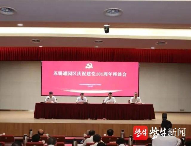 6月30日,中国共产党建党101周年即将到来之际,南通苏锡通园区举行庆祝建党101周年座谈会暨苏锡通·新心融新业态新就业群体党建品牌发布会,南通市纪委副书记、市监委副主任桑建美,市委统战部副部长、侨办主任金志伟,市交通运输局党委副书记、副局长顾欣荣与苏锡通园区党工委书记虞越嵩共同启动苏锡通·新心融党建品牌发布。